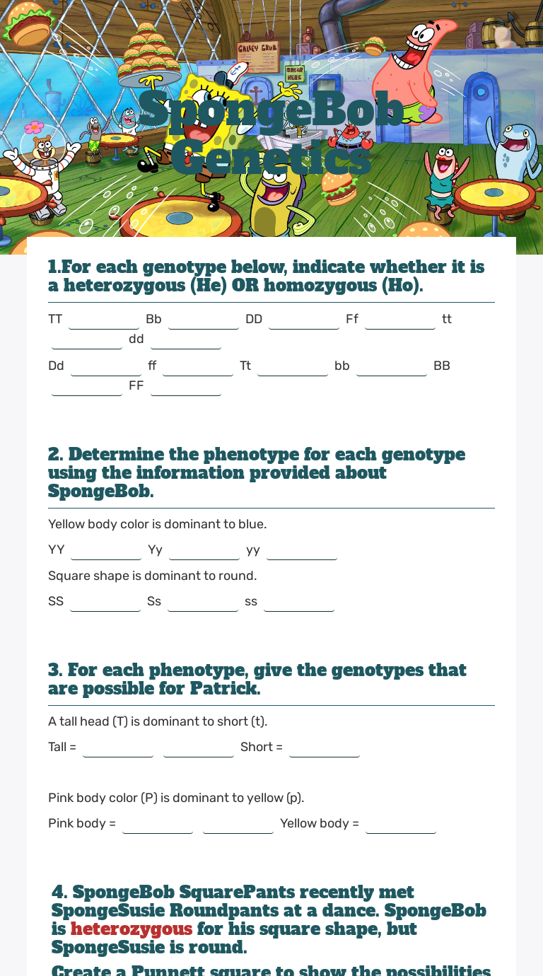 Spongebob genetics answer key :